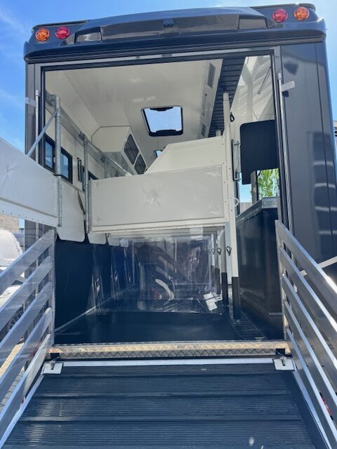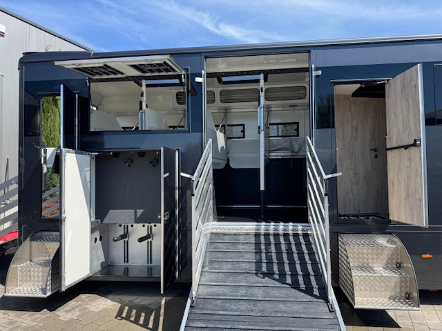 • Zusätzliche Türe ins Pferdeabteil hinten rechts